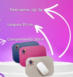 MousePad em couro sintético (ecológico), confortável e possue ótima fixação. Preenchimento de 2mm, absorção de impacto e fundo em camurça aveludada.