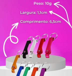 Abridor de metal/chaveiro modelo "pé de galinha" em diversas cores. Prático, alta qualidade e com acabamento de pintura excelente.