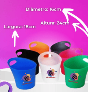 Balde de gelo plástico com capacidade de 4 litros para 4 garrafas ou 8 longe necks. Várias cores, material em PP ou PS acrílico.