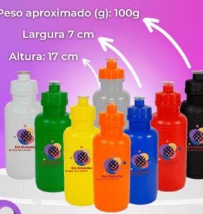 Squeeze plástico em PEAD com 500ml. Atóxico, material resistente e flexível com disponibilidade de várias cores.